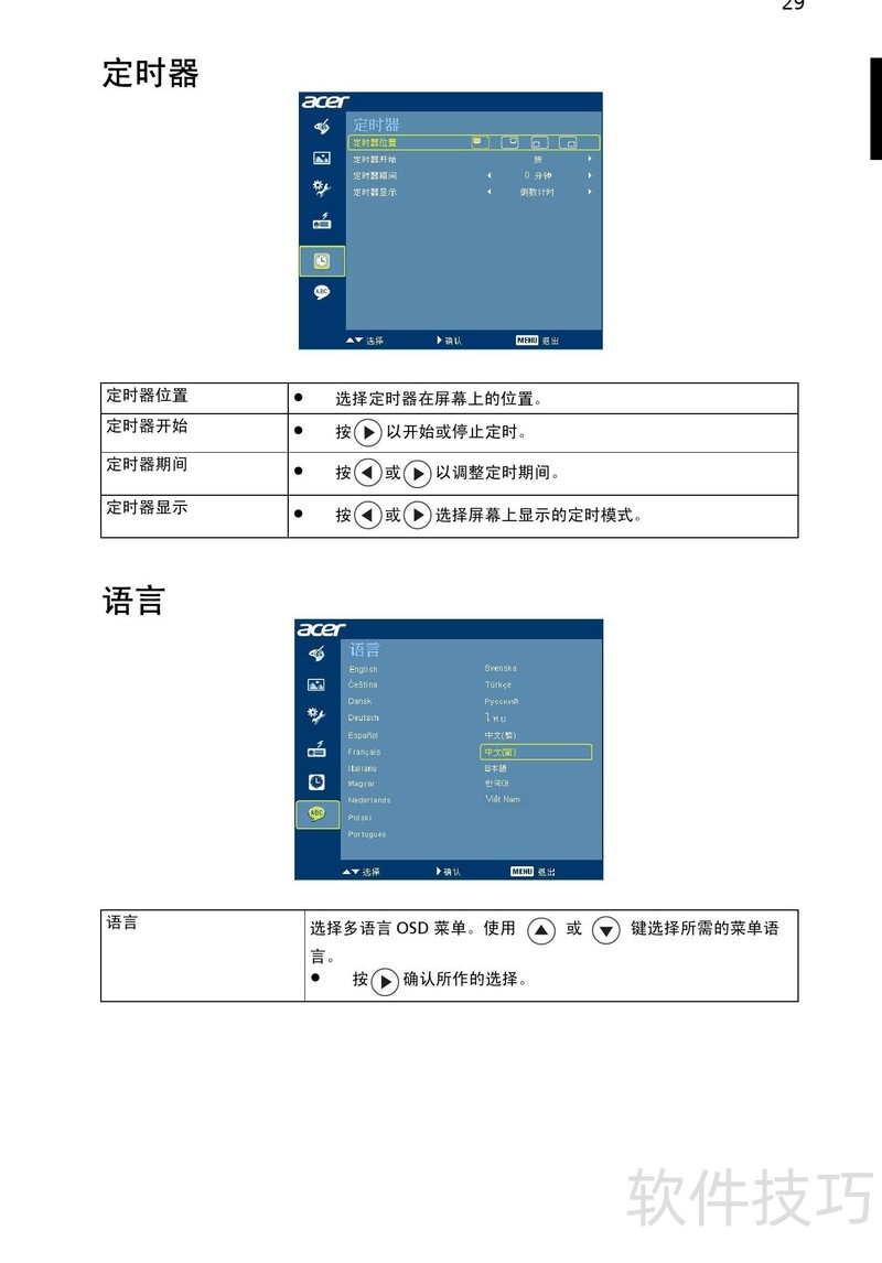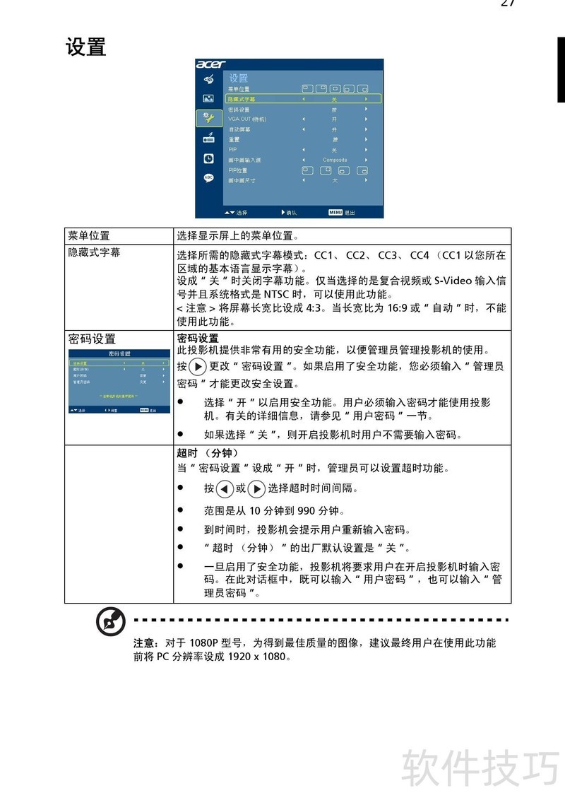 、 Acer H9500BD投影机使用说明书详细说明了设备的操作步骤与常见问题的处理方法,帮助用户正确使用并解决使用过程中可能遇到的各类故障。