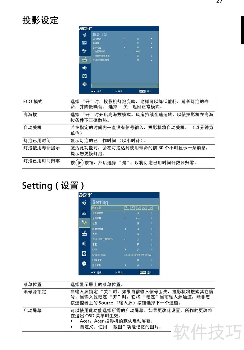 、 本文是Acer P7203投影机使用说明书,详细讲解产品操作步骤与常见问题处理方法,帮助用户正确使用设备并快速解决故障。