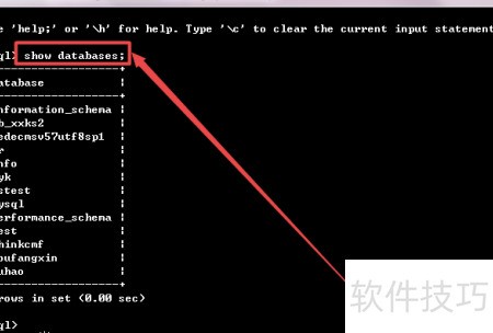 5、 输入 show databases; 并按回车,可查看当前系统中存在的所有数据库。