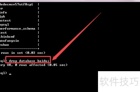 7、 若不再需要该虚拟数据库,可直接输入drop database 数据库名并回车,即可将其删除。
