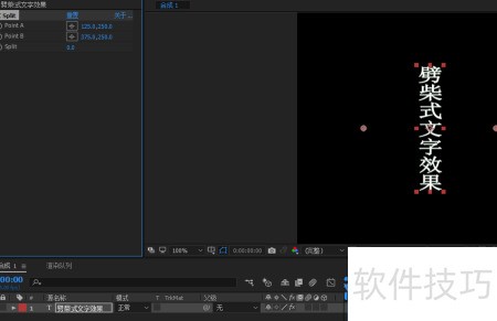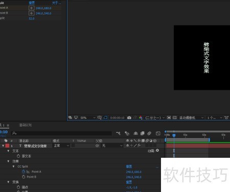 6、 通过为点A和K设置关键帧,实现文字撕裂的视觉效果。