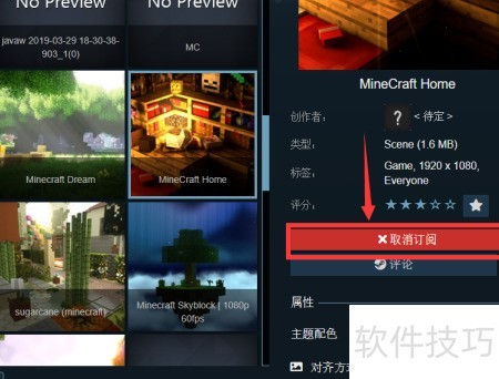 4、 选择壁纸后,界面右侧会出现取消订阅按钮,点击即可完成操作。
