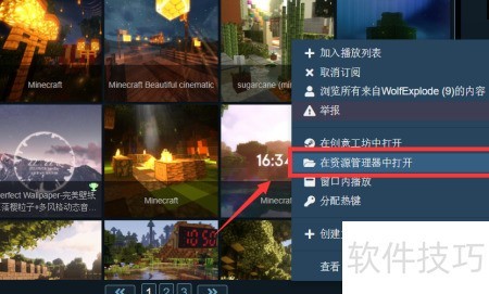 2、 选中视频壁纸后,右键点击并选择在资源管理器中打开即可。
