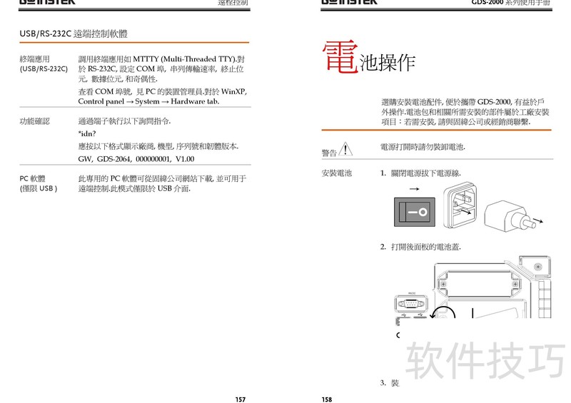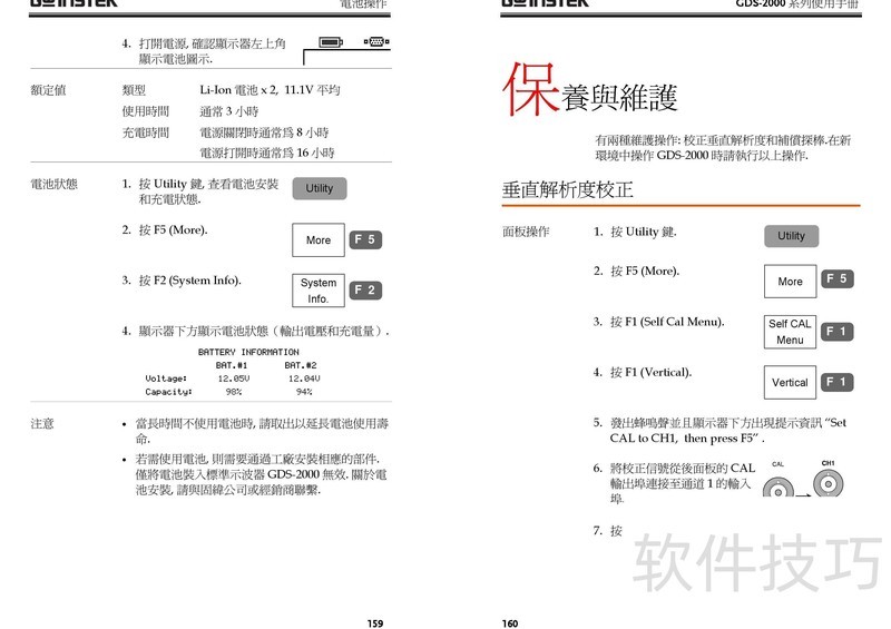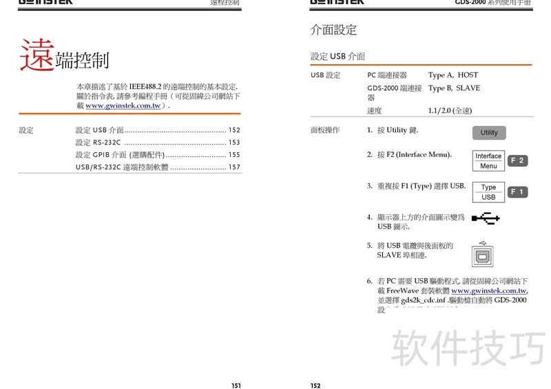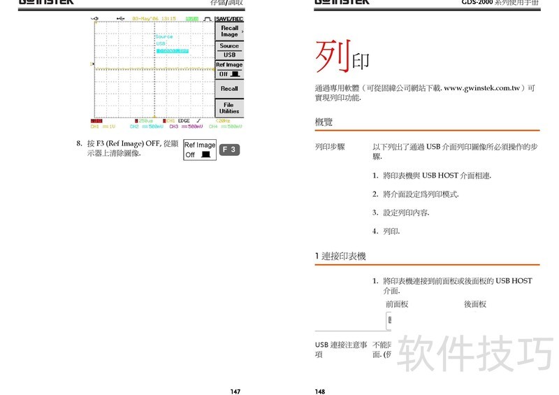 、 本书为GDS-800系列数字示波器使用手册,详细讲解仪器操作步骤与日常维护,并提供常见问题的排查及解决方法。