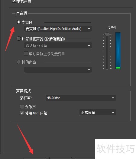 5、 勾选录制声音后,再选择麦克风选项即可。
