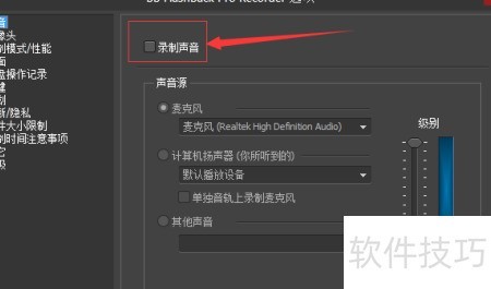 4、 在左侧声音设置中,选择并启用录制声音功能。