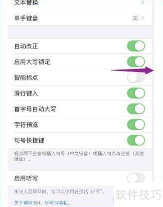12、 关闭键盘智能标点功能,只需向左滑动开关按钮即可完成。
