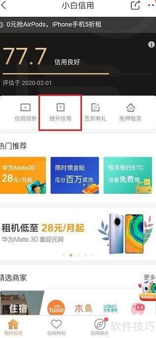 3、 进入信用提升页面,通过完成身份认证可提高信用分数,具体操作所示。