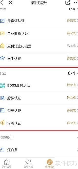 4、 可通过职业认证提升京东信用分,具体操作所示。