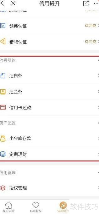 5、 通过履约消费与合理资产配置,可提升京东信用分,具体操作所示。