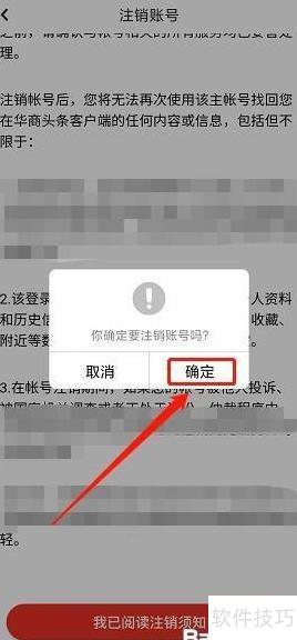 12、 进入账号注销页面,点击确定按钮,操作所示。
