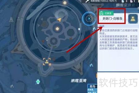 4、 前往白鲸岛最内侧的建筑,位于红框所示位置,具体坐标为(-533,-929)。