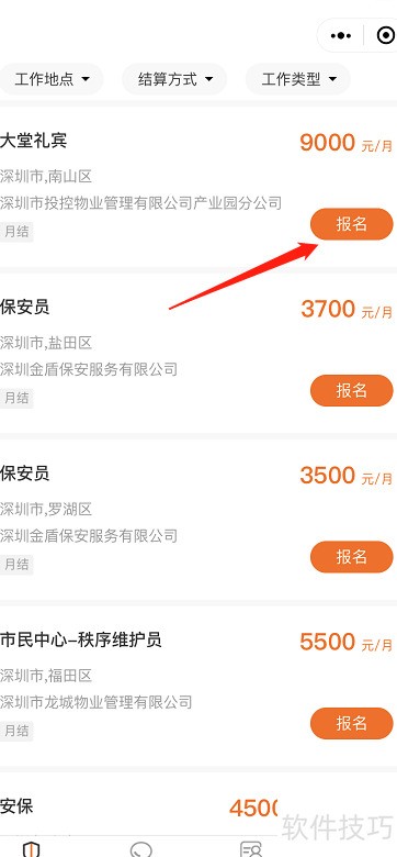 2、 点击工作列表报名