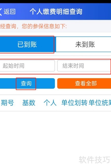 3、 在页面中选择已到账,设定时间范围后点击查询。