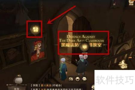 2、 进入城堡主楼的黑魔法防御课教室,左侧画像正是线索所指的探险家。