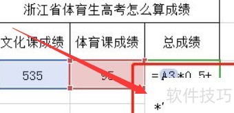 4、 将文化课成绩乘以0.5,加上体育课成绩乘以7.5再乘以0.5,得出最终得分。
