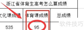 浙江体育生高考成绩由文化课与术科成绩按比例合成计算。