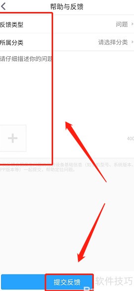 10、 进入帮助与反馈页面,选择类别,填写内容,上传图片后点击提交。