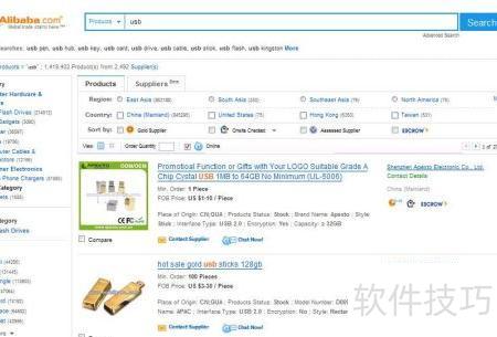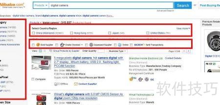 2、 买家通过搜索关键词后,常按地区、诚信度等条件进一步筛选供应商。