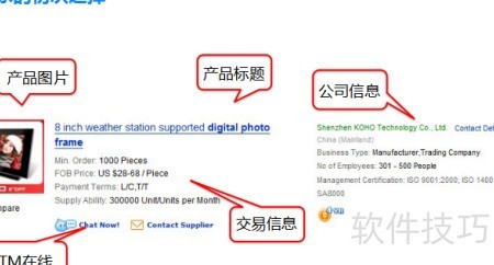 3、 买家首次选择时,通常关注产品图片、标题、TM在线状态、交易及公司相关信息。