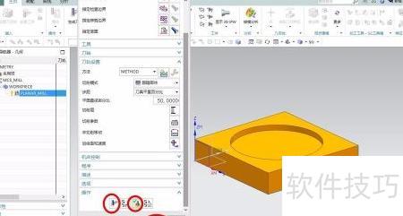 3、 在文件菜单中选择打开加工,或通过应用模块进入加工环境,在CAD中选取平面铣,并按照图示步骤操作即可。
