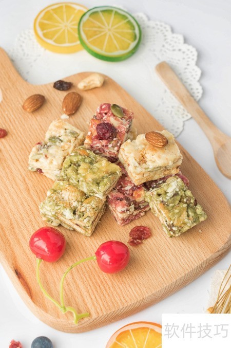 3、 将不粘锅烧热,放入黄油融化,倒入棉花糖,小火翻炒至完全融化。关火后加入奶粉搅拌均匀,再放入小圆饼干、蔓越莓干和混合坚果,快速翻拌均匀。将混合物倒入铺好油纸的方形模具中,压实整形为大方块。在雪花酥两面均匀筛上奶粉,形成雪花状外观。待其自然冷却后取出,切成小块即可食用。