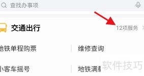 4、 进入办事页面,选择交通出行,点击右侧12项服务。