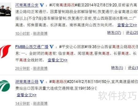 5、 登录微博,搜索XX高速路况或XX交通,即可找到各省专属的交通信息官微,实时发布最新路况动态,方便出行查询。