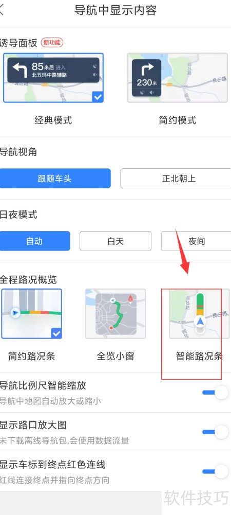 8、 进入全程路况概览,选中智能路况条功能即可查看。