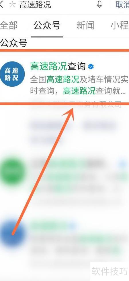 3、 在搜索框中输入高速路况,点击高速路况查询公众号即可进入,操作所示。