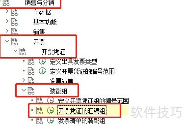 4、 进入销售与分销模块,展开后依次选择开票→开票凭证→装配组→开票凭证的汇编组,最后点击执行按钮。