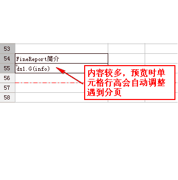 1、 所示,当info字段内容较多时,在分页预览中,FineReport简介标题与详细信息将被分置于不同页面显示。