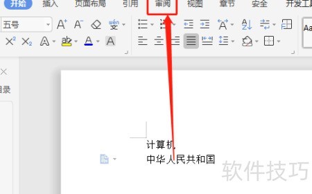 3、 点击审阅工具栏