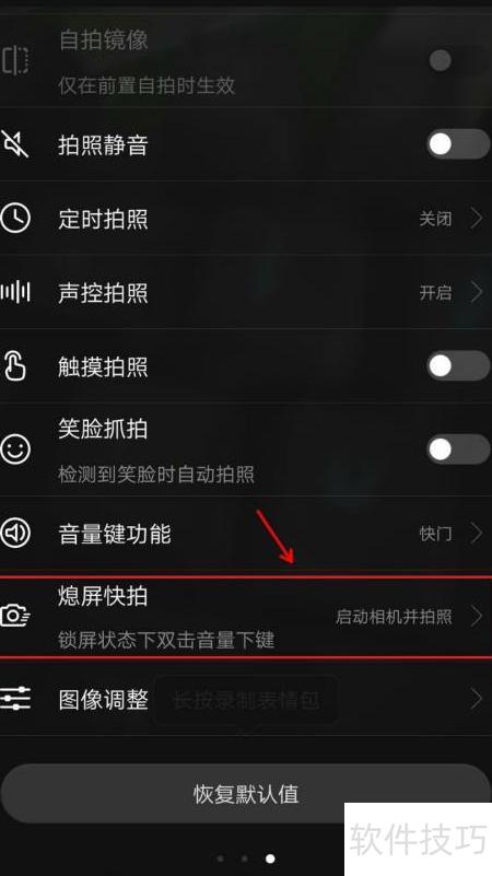7、 进入相机设置,开启熄屏快速拍摄功能。