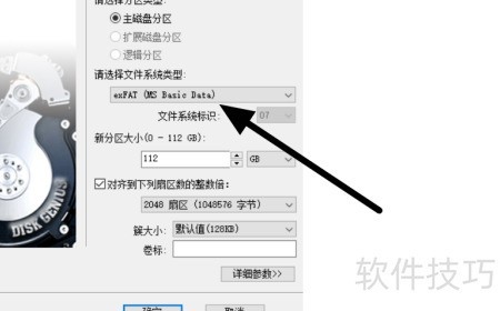 5、 接下来创建新分区,选择exFat格式,其余参数保持默认设置即可。