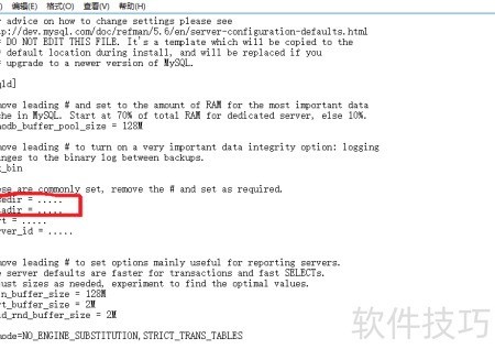 6、 在解压后的MySQL文件夹中找到 my-default.ini 文件,打开后按图示修改红圈标注的部分内容即可。