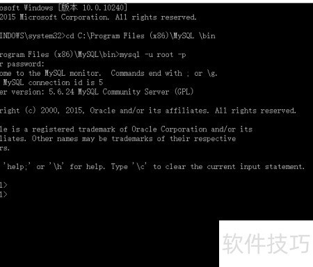 10、 以管理员身份打开命令提示符,输入命令:cd C:Program Files (x86)MySQLin,注意路径中的空格和引号。