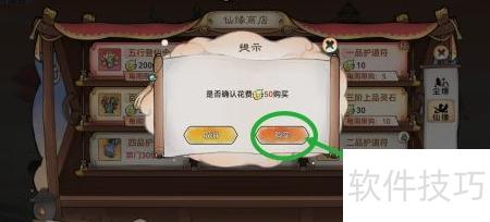 3、 进入尘缘商店后,选择并点击选项。