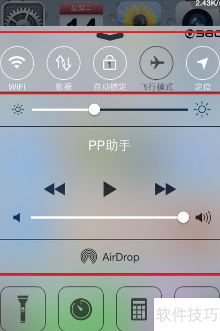 6、 控制中心启动时,默认显示顺序单中的首个滑动条。若在设置中关闭选项,下次开启时将自动呈现上次使用的滑动条界面。此外,用户还可通过安装360插件实现类似功能,具体操作所示,提升使用便捷性与个性化体验。