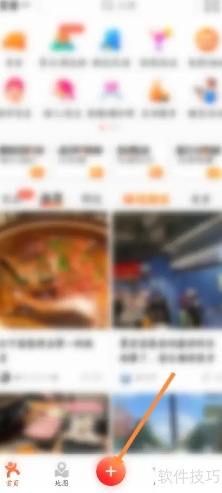 1、 打开大众点评App,点击底部的加号图标。