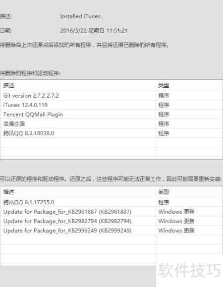 7、 可通过检查受影响的程序来判断系统还原的影响范围,从而了解其当前状态。