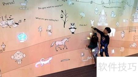 3、 墙面互动投影是通过将影像投射至墙面实现交互体验,包含互动砸球、霍格沃兹墙、互动滑梯、水族馆、魔法森林及抽象世界等多种趣味项目。
