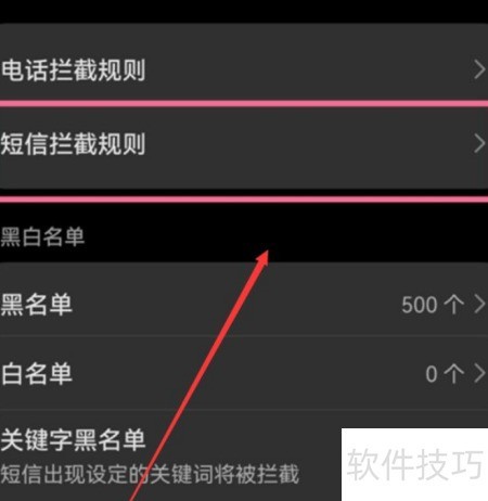 3、 第三步,点击短信拦截规则选项。