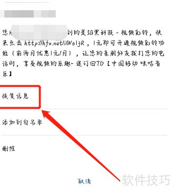 打开短信应用,进入菜单中的骚扰拦截功能,选择需恢复的短信,点击后即可查看并恢复该条信息。