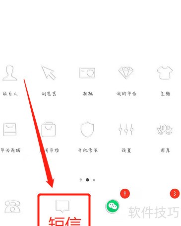 2、 点击手机短信图标,进入后查找菜单选项。