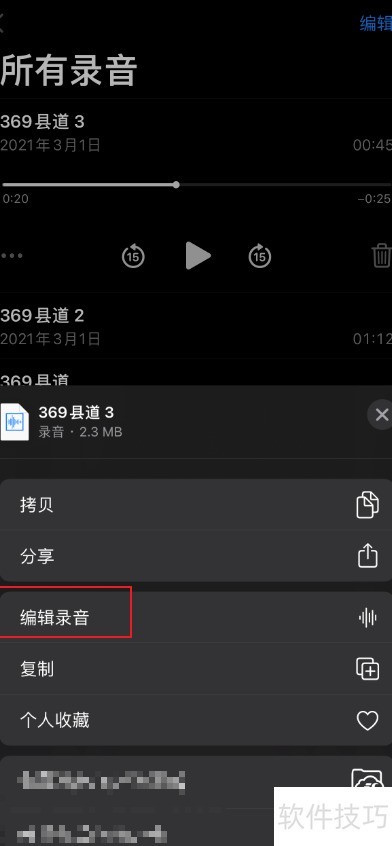 3、 点击录音旁的省略号进行编辑。
