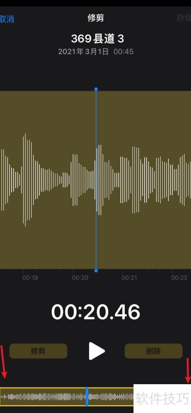 在苹果12的语音备忘录中,打开录音文件,点击编辑按钮,拖动两端滑块选择范围,然后裁剪即可完成修剪操作。