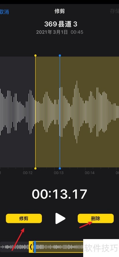 7、 在语音备忘录中点击修剪或删除即可编辑录音。