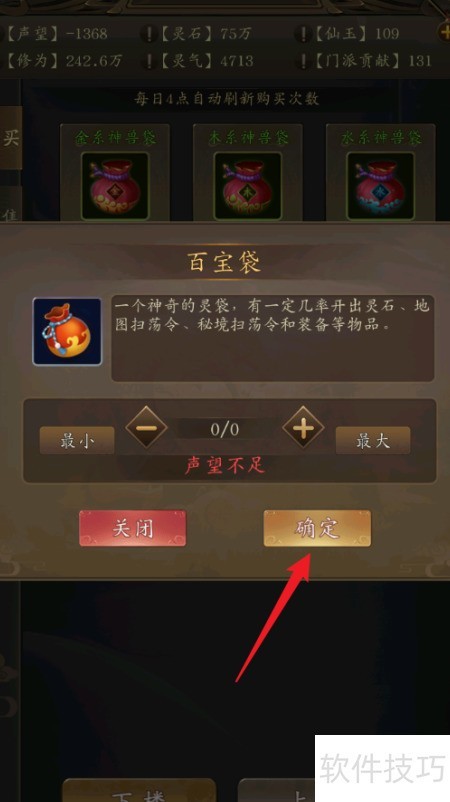 4、 第四步:在弹出窗口中点击确定,即可领取百宝袋。