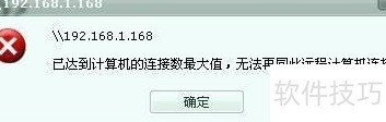 4、 当访问共享资源的电脑数量超过限定值时,系统将提示无法连接。若被共享设备的IP为192.168.1.x,且同时连接的设备超出限制,则会出现错误,因此此处设置为50,具体所示。